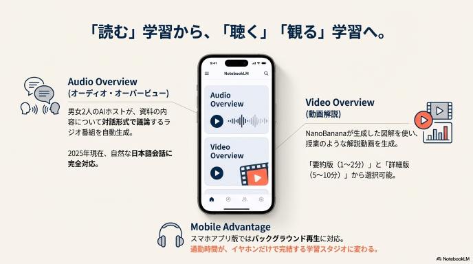 「聴く・観る」学習革命!Audio Overviewと動画解説の進化