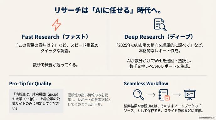 リサーチが変わる!「Deep Research」と「Fast Research」の使い分け