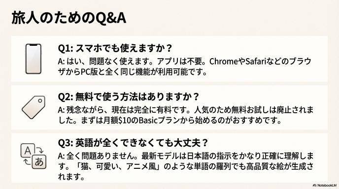A. 残念ながら、現在は完全に有料です。 以前は無料お試しがありましたが、人気すぎて現在は廃止されています。まずは一番安い「Basicプラン(月10ドル)」から始めて、コンビニ払いなどでVプリカを使って支払うのが学生さんにはおすすめです。