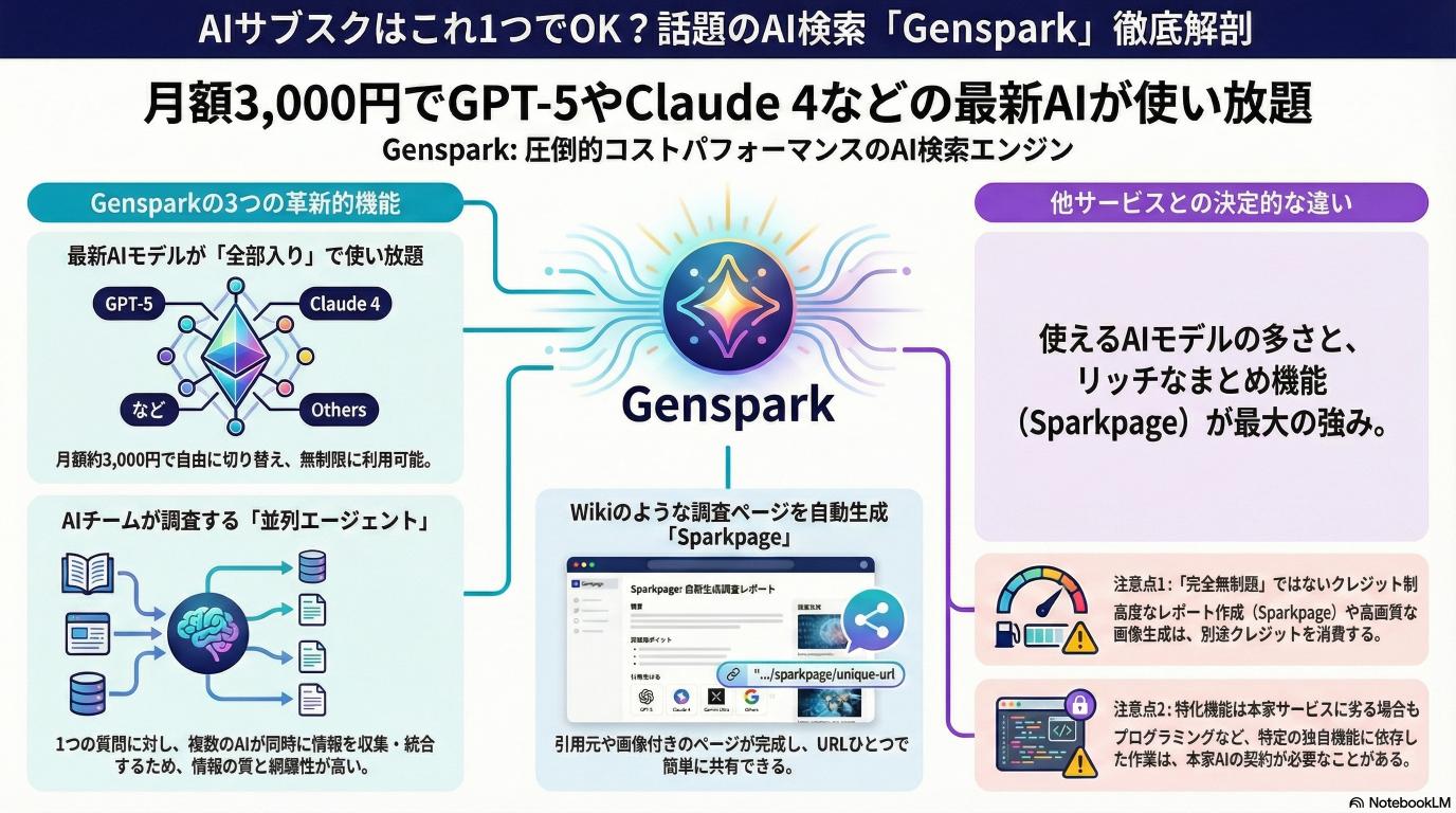 Gensparkは、複数のAIを契約するコストを劇的に下げ、リサーチ時間を短縮してくれる強力なツールです。