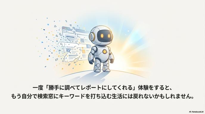 一度「勝手に調べてレポートにしてくれる」体験をすると、もう自分で検索窓にキーワードを打ち込む生活には戻れないかもしれません。