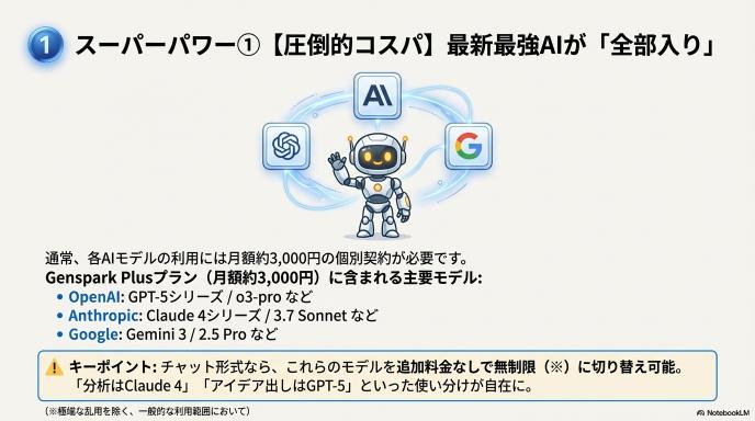 1. 【圧倒的コスパ】GPT-5、Claude 4などの最新モデルが「全部入り」