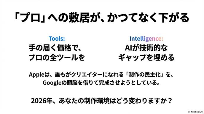 導入・全体像:Appleが仕掛ける「制作」と「知能」の同時革命
