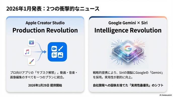 2026年1月、AppleからクリエイターとiPhoneユーザーの双方にとって衝撃的な2つの発表がありました。