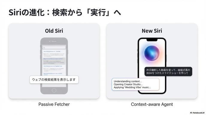 従来の「ウェブの検索結果を表示するだけ」のSiriから脱却し、Geminiの言語能力を活用して「複雑な質問への回答」「文章の要約・作成」「文脈を理解した対話」が可能になります。