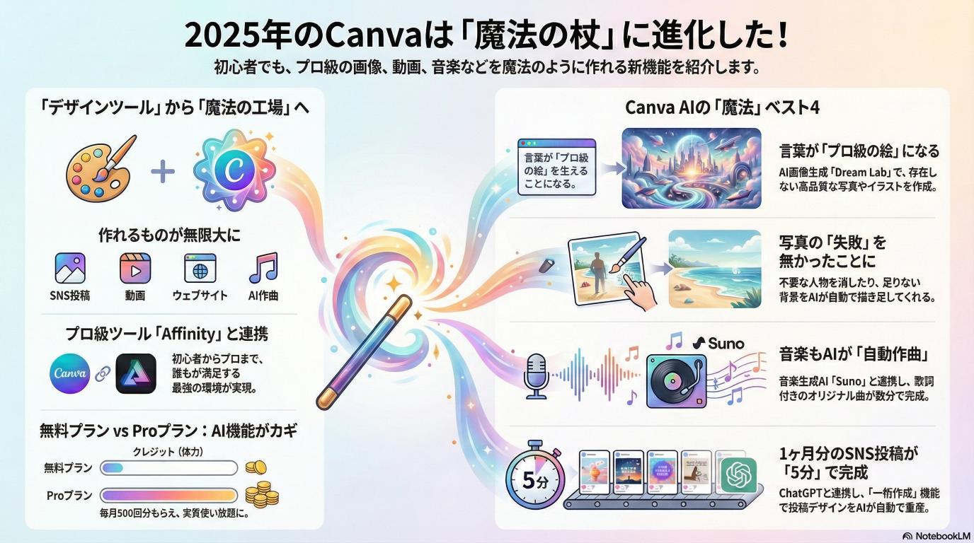 【2025年完全版】センス0でもプロ級に!Canva(キャンバ)×最新AIで「画像・動画・音楽」を魔法のように作る全手順ガイド