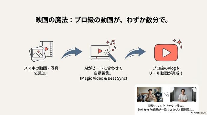 • スマホで撮った動画が、プロのミュージックビデオみたいに自動編集される