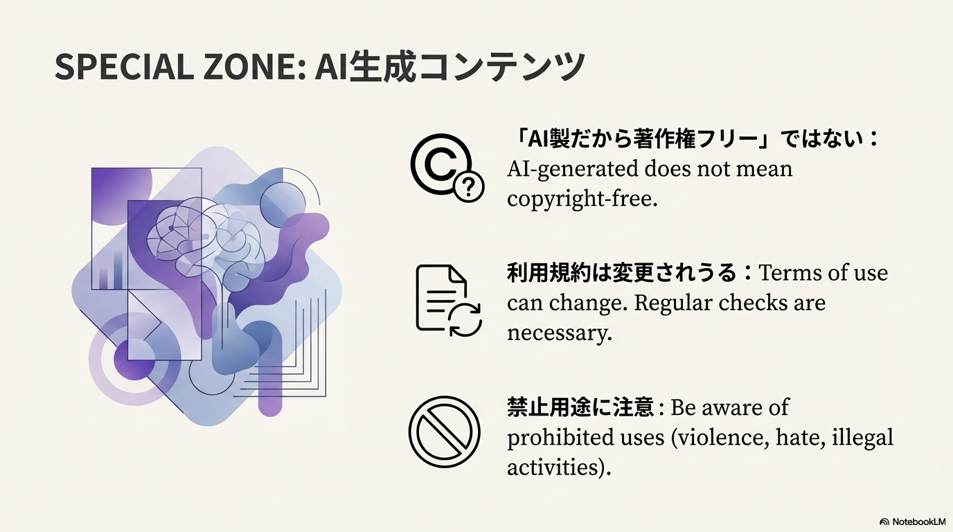 1. 「AIが作ったから著作権フリーで完全に自由」というわけではない