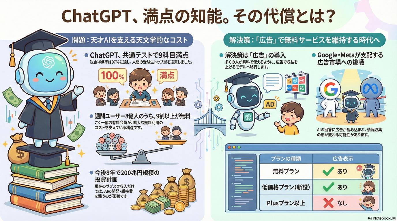 この記事では、最新の共通テストでの驚異的な結果と、それによって不可避となった「広告導入」の動きについて、その背景を深掘りします。