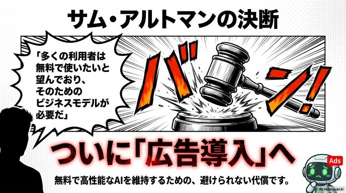 サム・アルトマンCEOは、「多くの利用者は無料で使いたいと望んでおり、そのためのビジネスモデルが必要だ」と述べています。これは、「無料で高性能なAIを使い続けるための代償として、広告を受け入れる時代」が来たことを意味します。