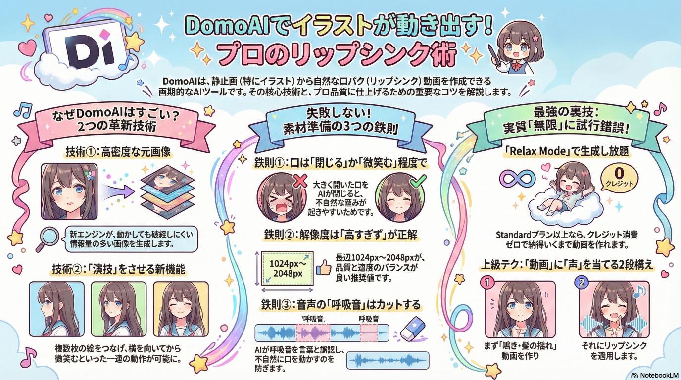 本記事では、2025年末の大型アップデートで話題をさらった「DomoAI」に焦点を当て、公式マニュアルには載っていない実践的なノウハウや、プロ品質に仕上げるための裏技を余すところなく解説します。