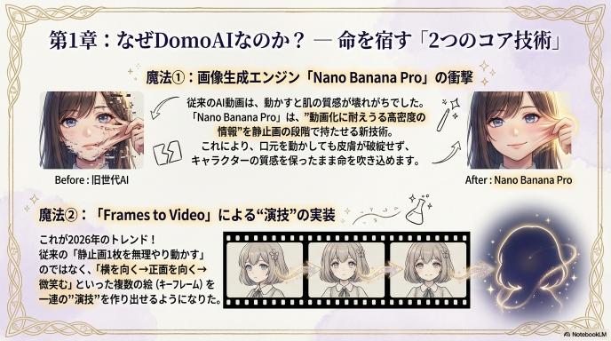 多くの動画生成AIが存在する中で、なぜ今DomoAIが「表現者」たちに選ばれているのか。その理由は、2025年12月に実装された2つのコア技術にあります。