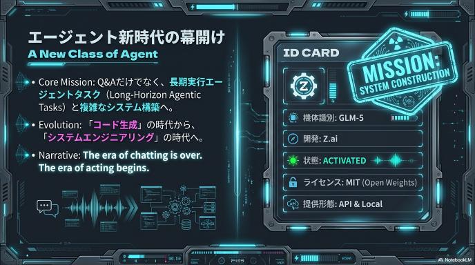 GLM-5が従来モデルと一線を画すのは、その設計思想にあります。単なるコード生成や質問応答の精度向上ではなく、長期実行のエージェントタスク(long-horizon agentic tasks) や 複雑なシステムエンジニアリングを主戦場として明確に据えている点が最大の特徴です。