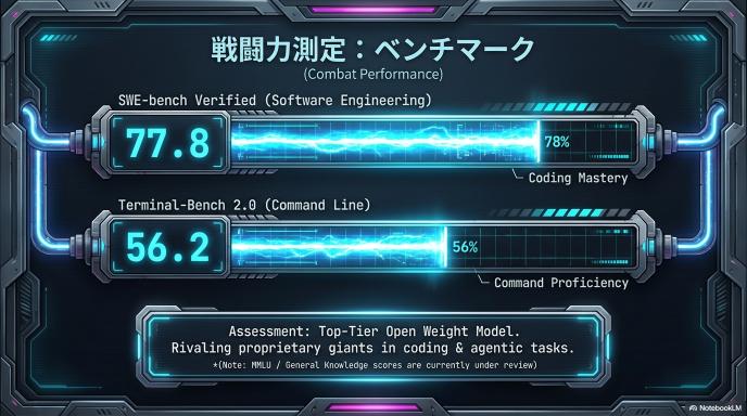 SWE-bench VerifiedやTerminal-Benchでの高スコアは、ソフトウェア工学系タスクにおけるオープンウェイトモデルとしてのポジション確立を強く意識したものと言えます。MIT Licenseでのオープンウェイト公開と、競争力のあるAPI価格設定は、DeepSeek・Qwen・Kimiなど中国発LLM勢との差別化要因にもなり得ます。