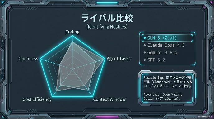 Z.ai(旧Zhipu AI)は、GLM-4シリーズで中国AI市場における存在感を高めてきましたが、GLM-5では「オープンウェイト+商用API」の二段構えで、グローバル市場での競争力を一段引き上げる狙いが見て取れます。