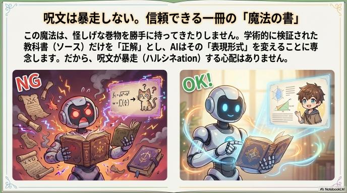 一般的なAI学習ツールは、RAG(検索拡張生成)を用いて外部情報を引っ張ってくることが多いですが、Learn Your Way は「ソース(元教科書)」を厳格に固定している点が特徴です。 OpenStaxやLibreTextsといった、学術的に検証されたOER(オープン教育リソース)を「正解データ」として固定し、AIはその「表現形式(Presentation)」の変換に専念します。これにより、生成AI最大のリスクであるハルシネーション(嘘の記述)を抑制しつつ、表現の自由度を高めることに成功しています。