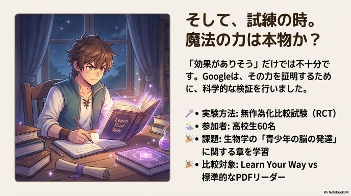 多くのEdTechツールが「効果がありそう」という感覚値で語られる中、Googleは小規模ながら堅実なRCT(無作為化比較試験)を実施し、その結果を公開しています。