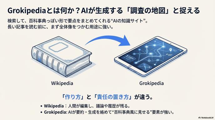 Grokipediaは、最終回答ではなく「地図」。地図で方向を決めて、確定情報は必ず一次情報で固める。この使い分けができると、便利さだけを安全に取り込めます。