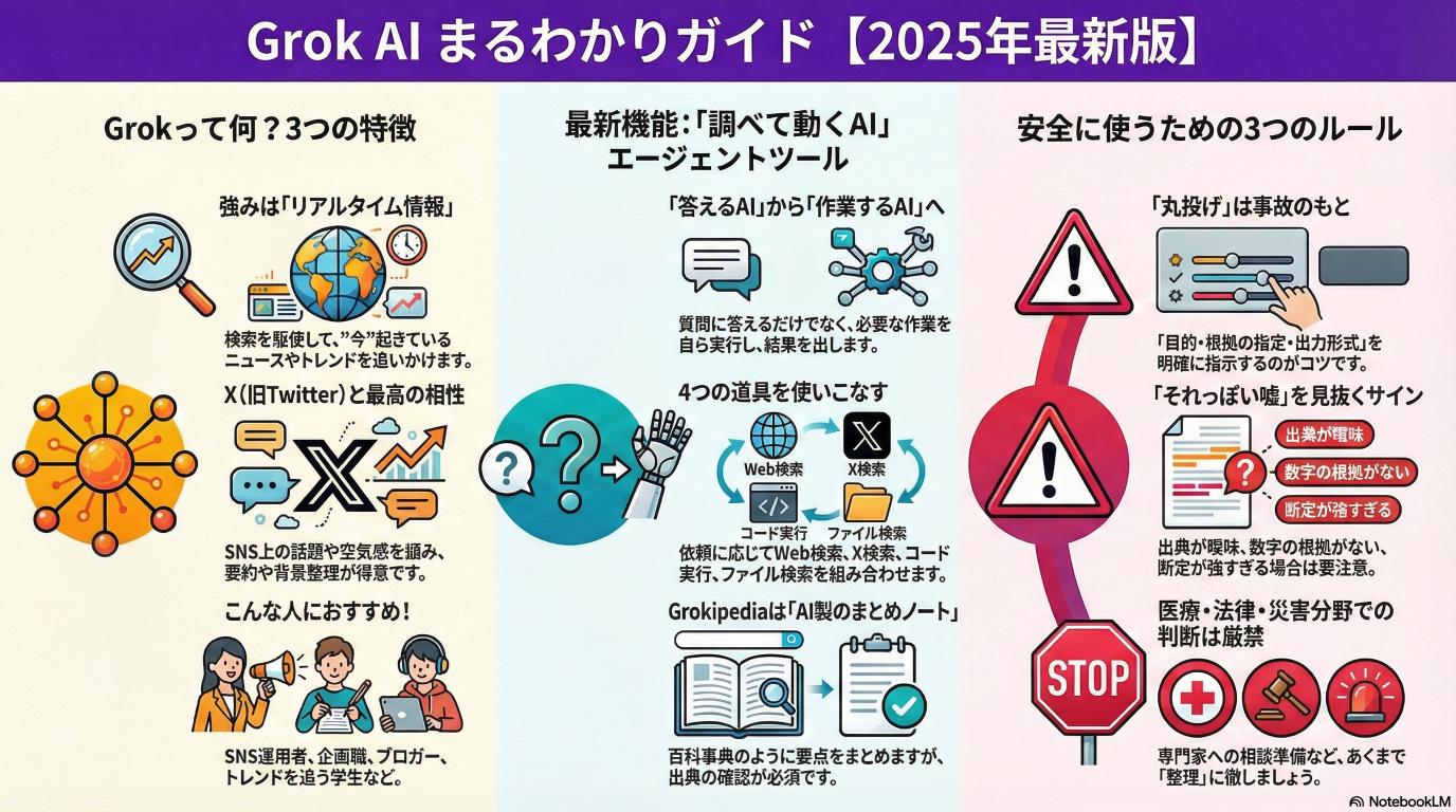 2025年12月最新版|Grok(グロック)AIの今がわかる!Grok 4.1 Fast・Agent Tools・Grokipediaまで一気に解説