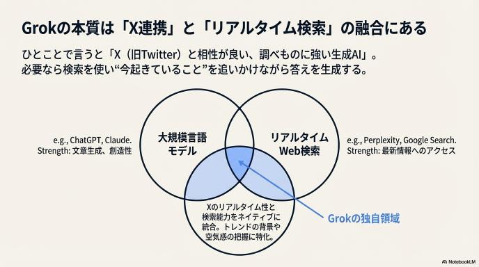 Grokは「X(旧Twitter)発のAI」って理解でOK