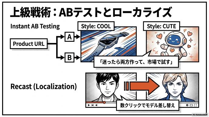 日本向けの動画を、現地のモデル風に変えて海外展開する……といった「ローカライズ」が数クリックで完了します。