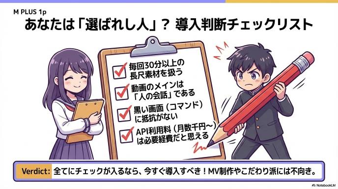 このツールを使う最大のメリットは、「時間の節約」ではありません。「脳の節約」です。 単純作業で脳を疲れさせるのをやめ、浮いたエネルギーを「次はどんな企画をやろうか?」「サムネイルはどうしようか?」というクリエイティブな「設計」に回せるか。