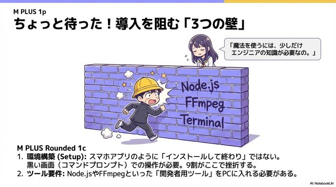 ここまで読むと「今すぐ使いたい!」と思うかもしれませんが、正直に言います。導入はかなり難しいです。 スマホアプリのように「ダウンロードして終わり」ではありません。以下の3つの壁を乗り越える必要があります。