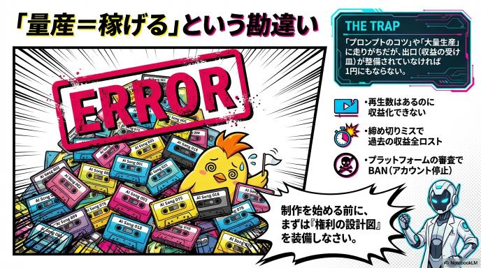この記事は、単なる「AI音楽の作り方」ではありません。作った音楽をいかにして「資産」に変えるかというビジネス設計図です。