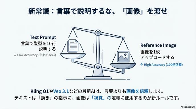 「AIに詳しく説明すれば、思い通りの絵が出る」というのは過去の話です。今のAIは、言葉よりも「画像」を信じます。