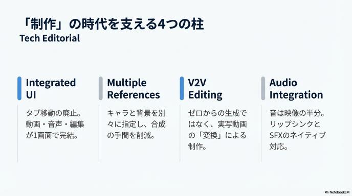 伸びるのは:統合UI/複数参照/V2V編集/音声統合