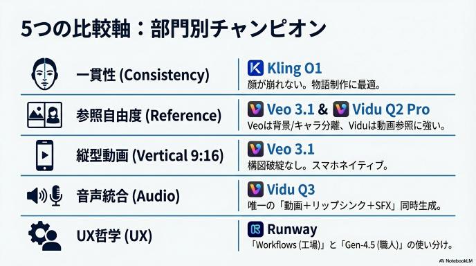 「全部すごそうに見えて、違いがわからない」という人のために、5つのポイントでチャンピオンを決めました。